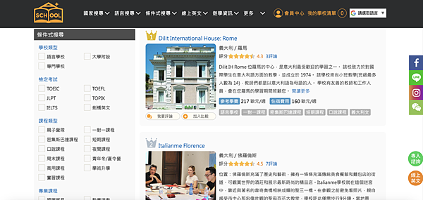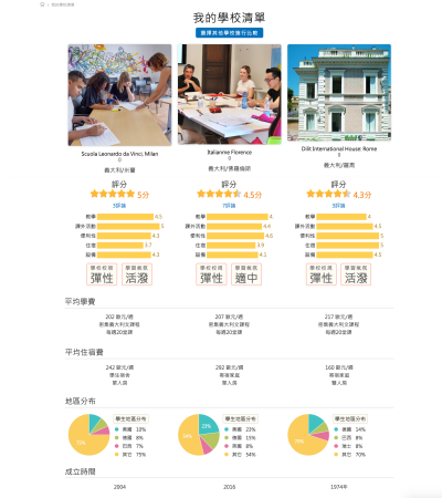 可以選不同國家(共20+國家)然後不同城市的學校比較
